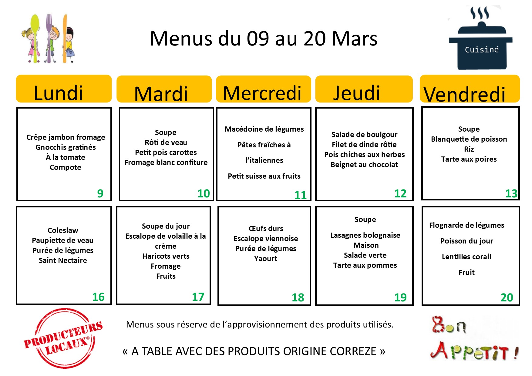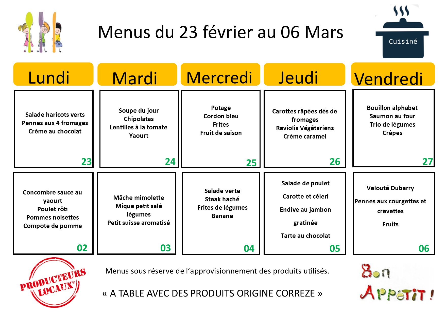 Le menu de la cantine est également disponible sur la page facebook de la mairie!